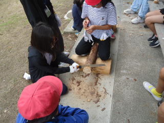 ウォークラリーや丸太切り体験など自然の中でたくさん活動することができました。